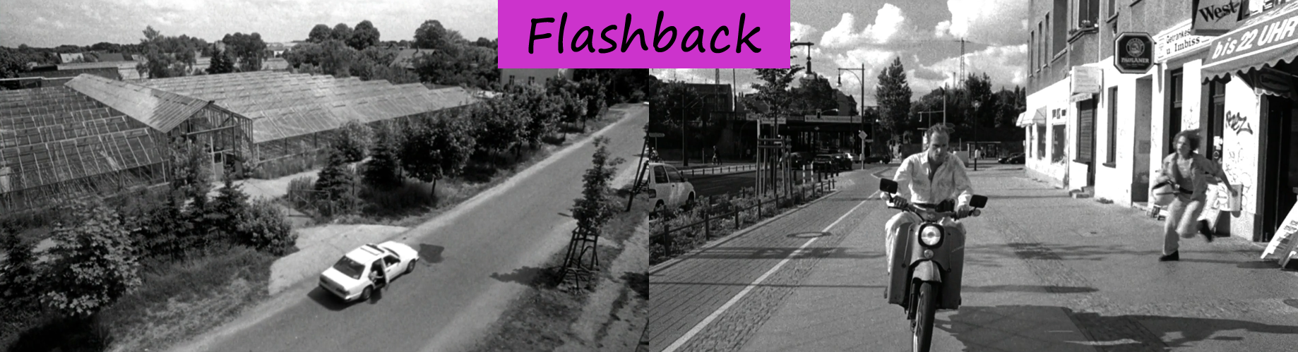 The film Run Lola Run consists of different levels of reality and time. In addition to the main plot, which follows Lola and Manni, there are five other levels of reality, which show parallel plots, the future or a review of past events. Each of these complementary time levels has been created in a very specific visual way. While only the scenes with Lola and Manni were shot on 35mm film, all the others were video recordings, which are slightly blurred by the use of hand cameras.